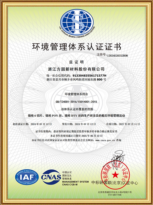 फेंगमिंग स्ट्रीट, टोंगजियांग, झेजियांग में स्थित, हम नायलॉन 6 पॉलिमर चिप्स और नायलॉन फिलामेंट यार्न के अनुसंधान एवं विकास और उत्पादन में विशेषज्ञ हैं, जिसमें POY, HOY, FDY, DTY और ACY शामिल हैं, जो डाउनस्ट्रीम निर्माताओं के लिए स्थिर सोर्सिंग और विश्वसनीय आपूर्ति का समर्थन करते हैं।